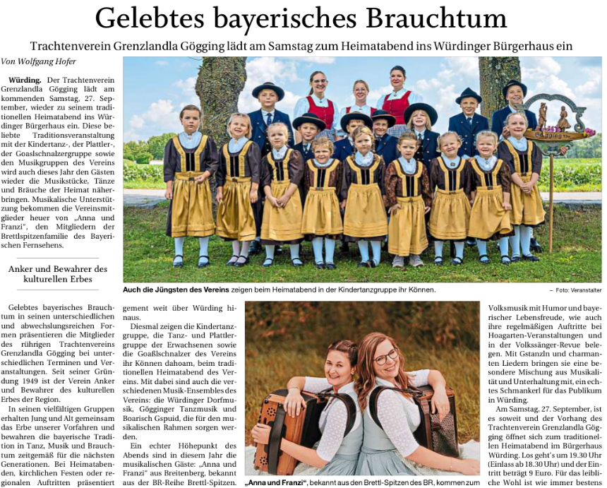 Heimatabend am 24.09. im Bürgerhaus in Würding