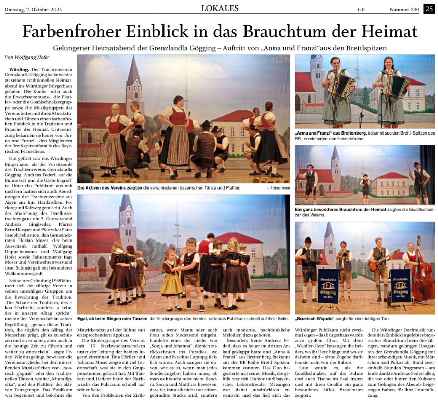 Jubiläumsheimatabend der "Grenzlandla Gögging" im Bürgerhaus